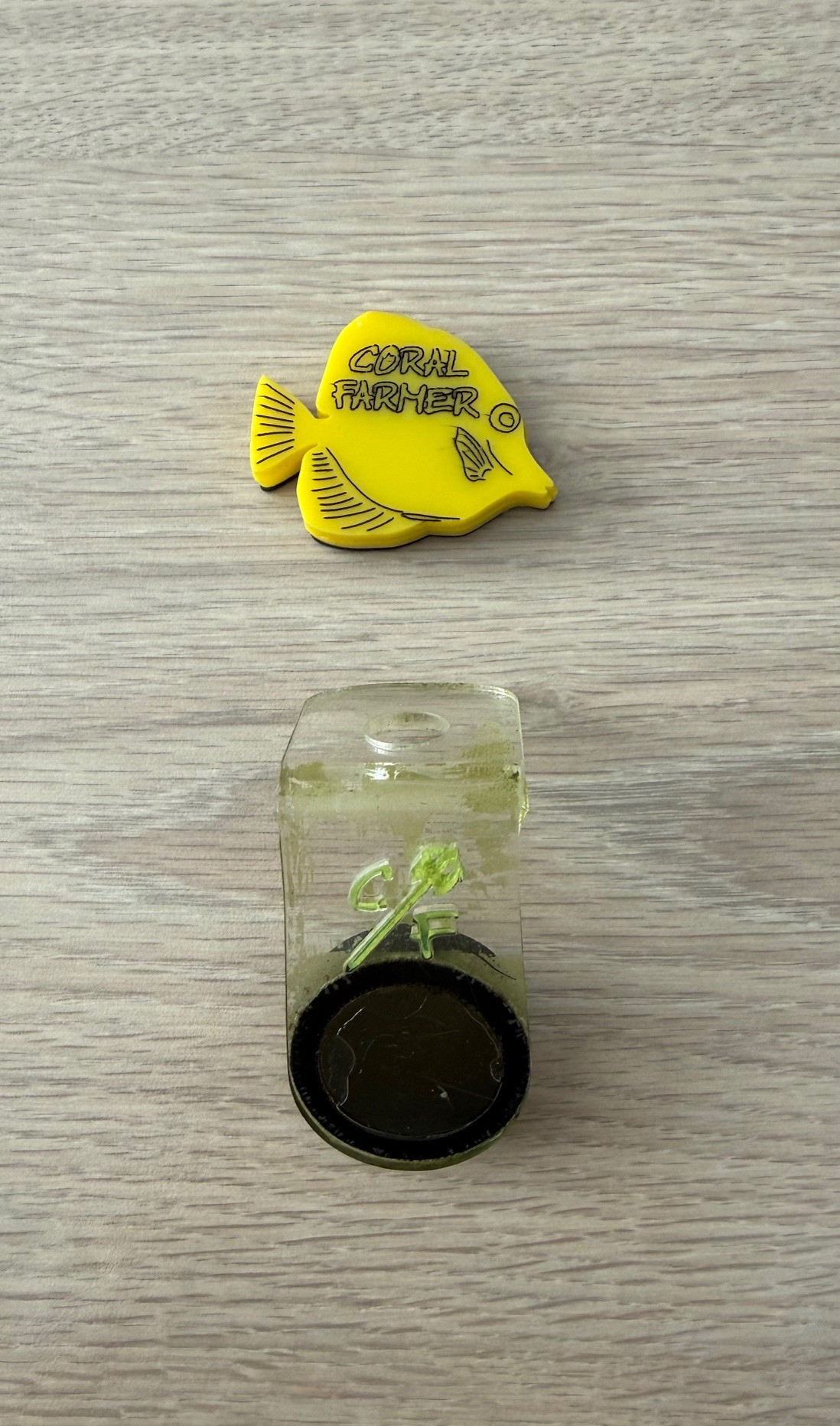 Built with pride in Canada. Extra strong double sealed epoxy coated N52 magnets for complete corrosion resistance! Holds 1 standard frag plug with stem up to 7/16″ diameter (enlarged by myself from the original .41 inch (10.4mm) diameter to fit most if not all frag plugs). Magnets hold well on glass or acrylic up to 3/4 inch (19mm) thick. Suction cups always fail, so don’t use them.