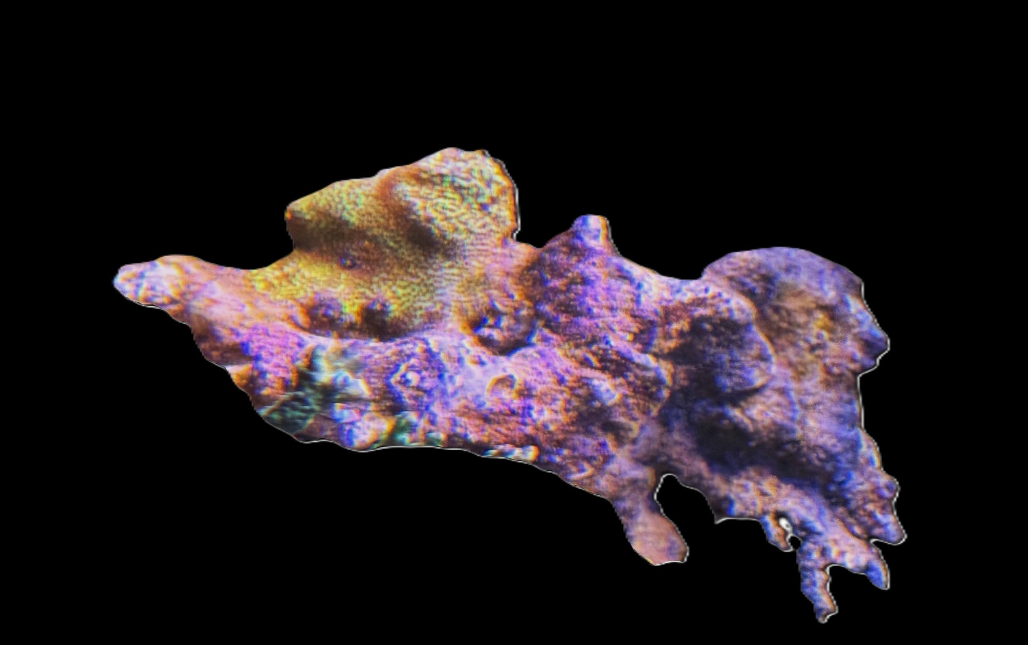 Description: About 2″ x 2″ JF Burning Banana Stylo on a 8″ CaribSea LifeRock Shape.