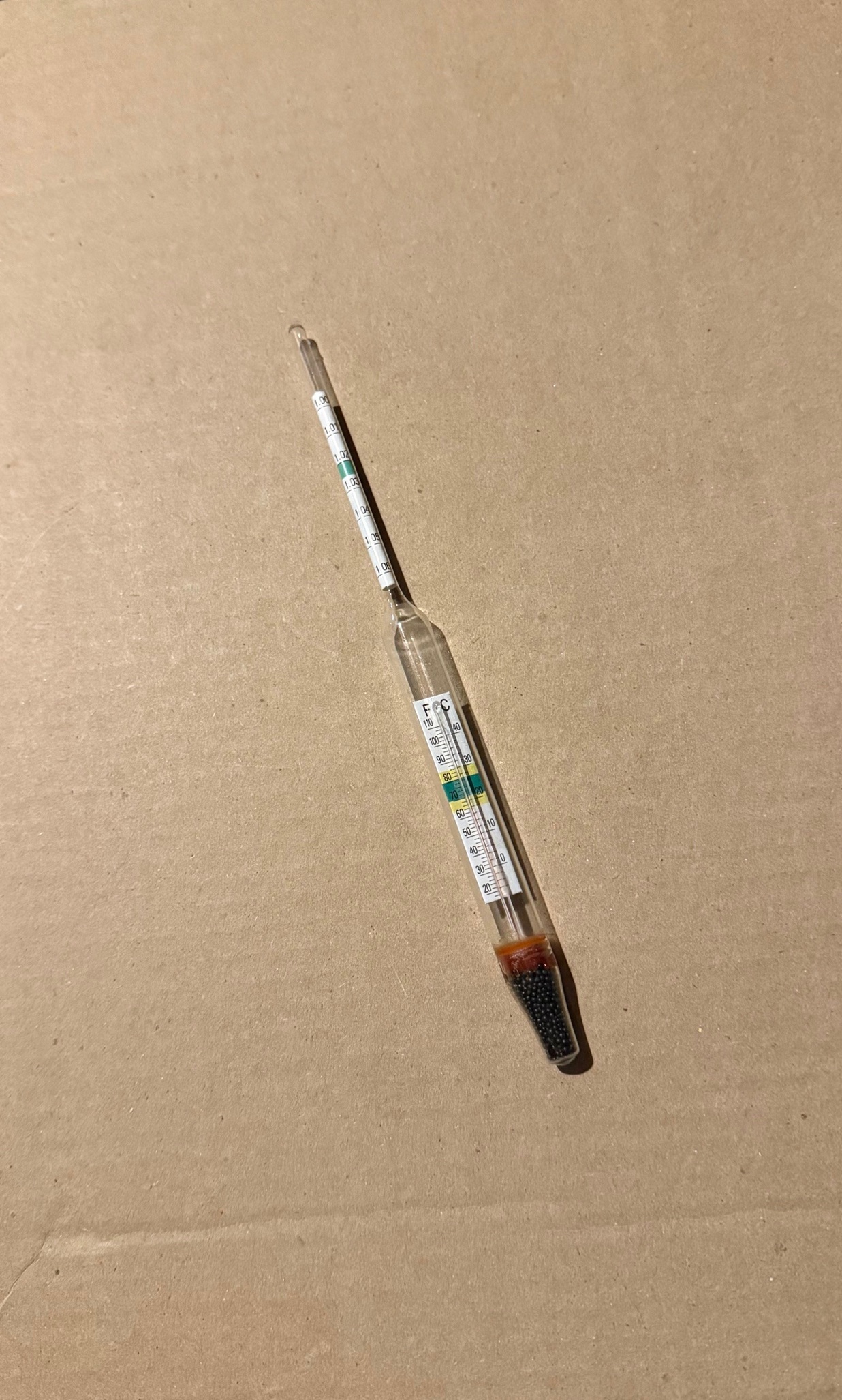 Place the 2-in-1 floating hydrometer into water, and let it flow freely in the water.